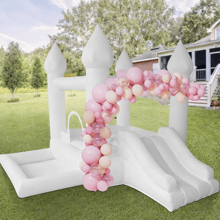A charming White Castle Mini inflatable — a compact, castle-style jumper that brings a touch of fairytale whimsy to small parties and tight spaces. Its bright white color and classic turreted silhouette create an elegant, photo-ready centerpiece that works well for birthdays, family gatherings, church events, or any celebration where a full-size bounce house would be too large. Sized for younger children or limited-area setups, this mini castle offers safe, bouncy fun while keeping a low profile and easy footprint for backyard lawns, patios, or indoor gymnasiums. Simple to set up and eye-catching without being overwhelming, it’s a perfect rental when you want the castle look and playful atmosphere without sacrificing space or convenience.